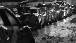 Вечером понедельника движение в столице оказалось практически парализовано из-за сильного снегопада и неблагоприятных погодных условий.