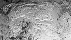 Госкорпорация «Роскосмос» опубликовала спутниковый снимок снежного циклона, приближающегося к Москве.
