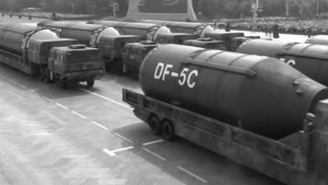 Во время парада в Пекине Китай впервые продемонстрировал межконтинентальную ядерную ракету на жидком топливе DF-5C, способную поражать цели по всей планете, сообщил комментатор парада.